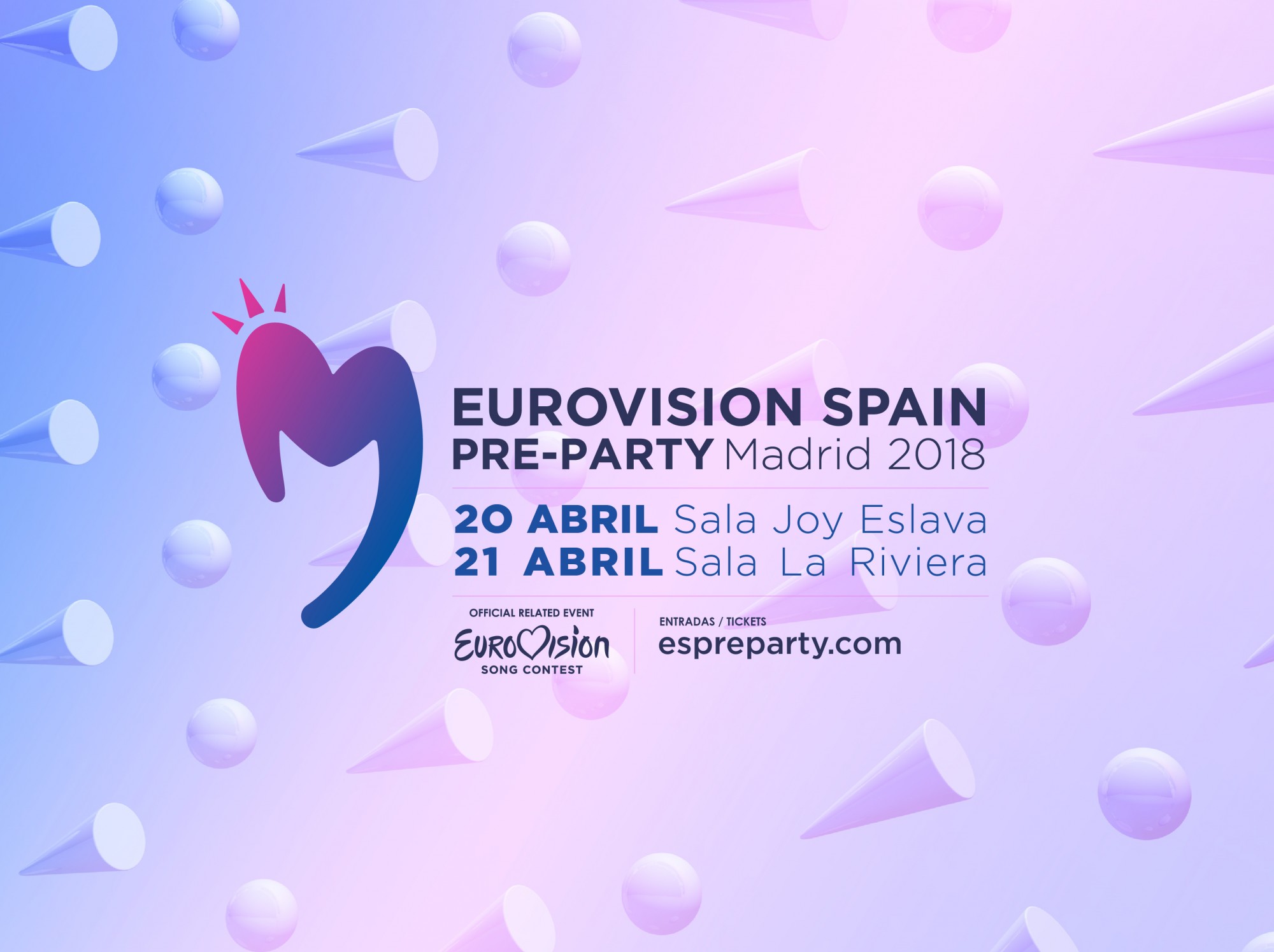 El súper fin de semana eurovisivo en Madrid arranzará el viernes 20 de abril en la no menos famosa Joy Eslava con la Welcome ESPreParty, el concierto de bienvenida protagonizado por cerca de una decena de artistas españoles relacionados con el festival, con la presencia de todas las delegaciones internacionales en nuestra particular green room donde se dejarán querer por los pasionales fans españoles.