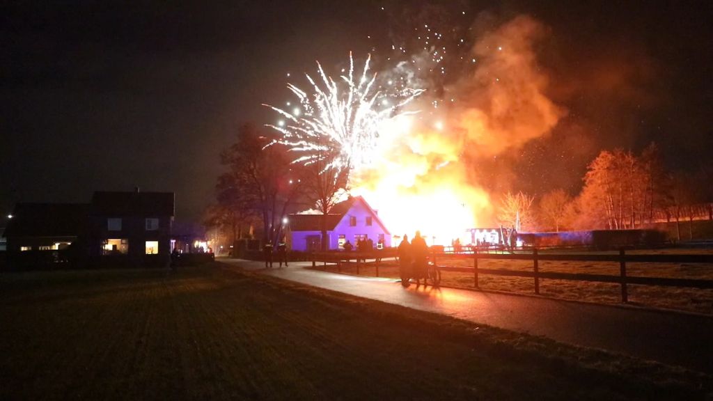 Dozen vuurwerk ontploft bij grote schuurbrand in Lunteren