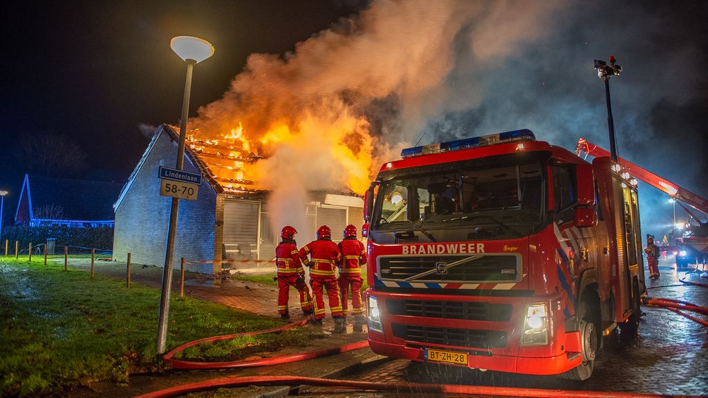 Een woning met rieten kap aan de Kromsteeg in Kerkdriel is afgebrand. Omwonenden wordt aangeraden om ramen en deuren te sluiten. De woning moet als verloren worden beschouwd, zegt de brandweer.