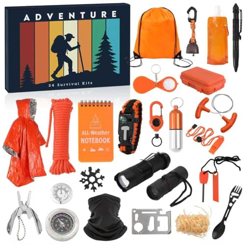 【Survival Kit Advent Calendar】It contains 24 kits with distinct functions, featuring no repeated tools—each one is highly practical, making it perfect for outdoor adventures and survival emergencies.