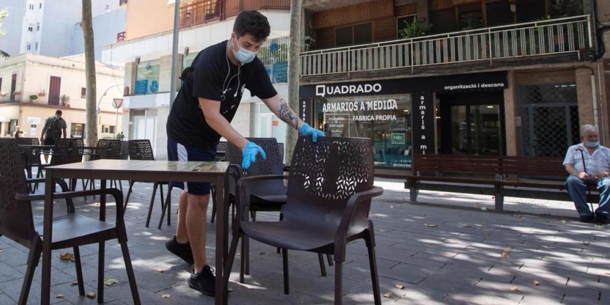 Una imagen de archivo de un camarero preparando la terraza de un restaurante